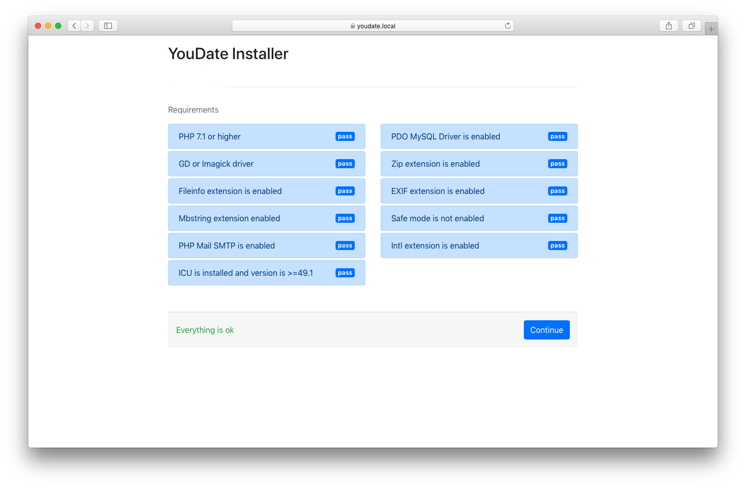 Make sure that everything is ok (all checks pass) and click the "Continue" button.